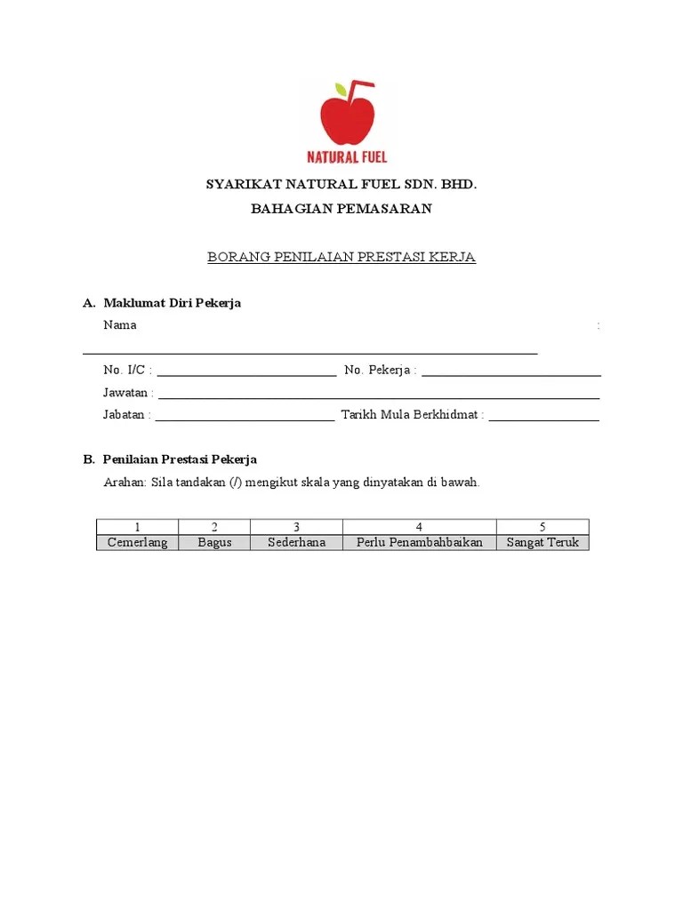 You can also bookmark this page with the url . Penilaian prestasi kerja in english. Contoh borang penilaian prestasi kerja swasta teeracs . Nyatakan bahawa pekerja tidak melakukan jangkaan pekerjaan minimum yang dibincangkan untuk tahun ini . Pekerja contoh borang penilaian prestasi kerja. Borang penilaian pekerja menyelaraskan proses pengurusan prestasi .